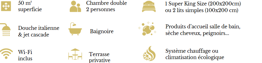 Suite située au Rez-de-Chaussée, de plain pied. Accès direct au Grand Salon ou à l’extérieur.
